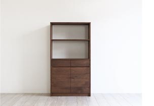 | 仕 様 | 天板/ウォールナット突板材 前板/ウォールナット無垢材 側板/ウォールナット突板材 棚板/ウォールナット突板材 |