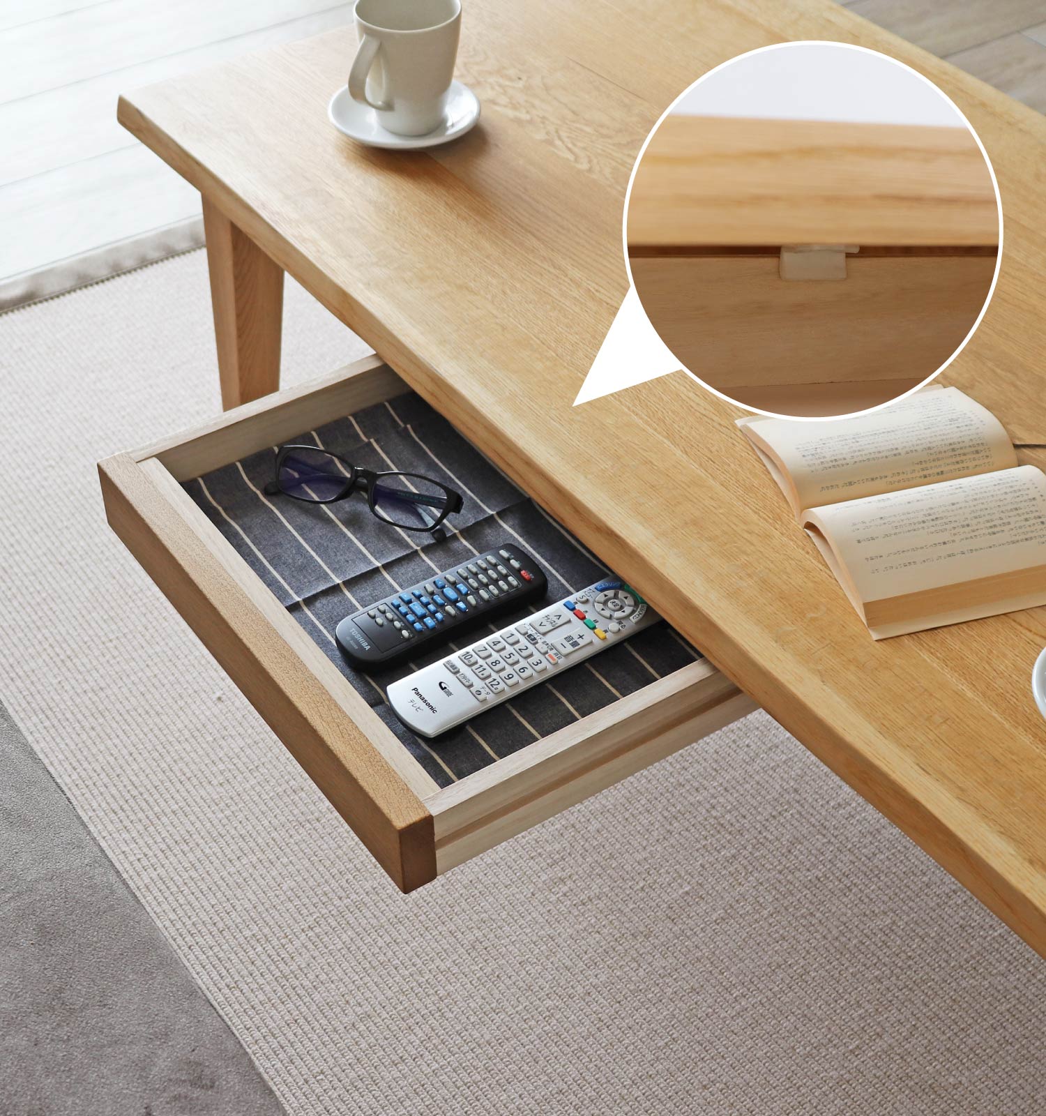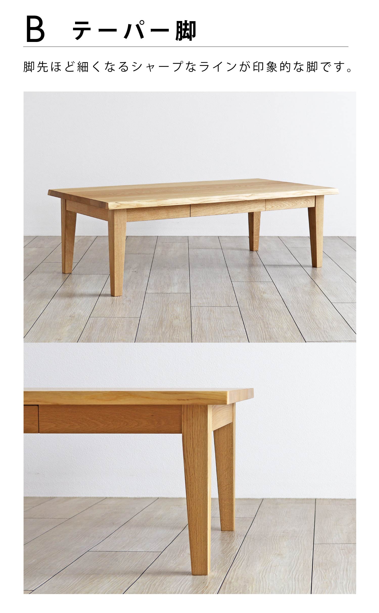 HW-HIKIDASHI-TABLE ※メールやファックスでご注文の際は、品番の後にご希望の [脚の形状]を付けてご入力ください。 |