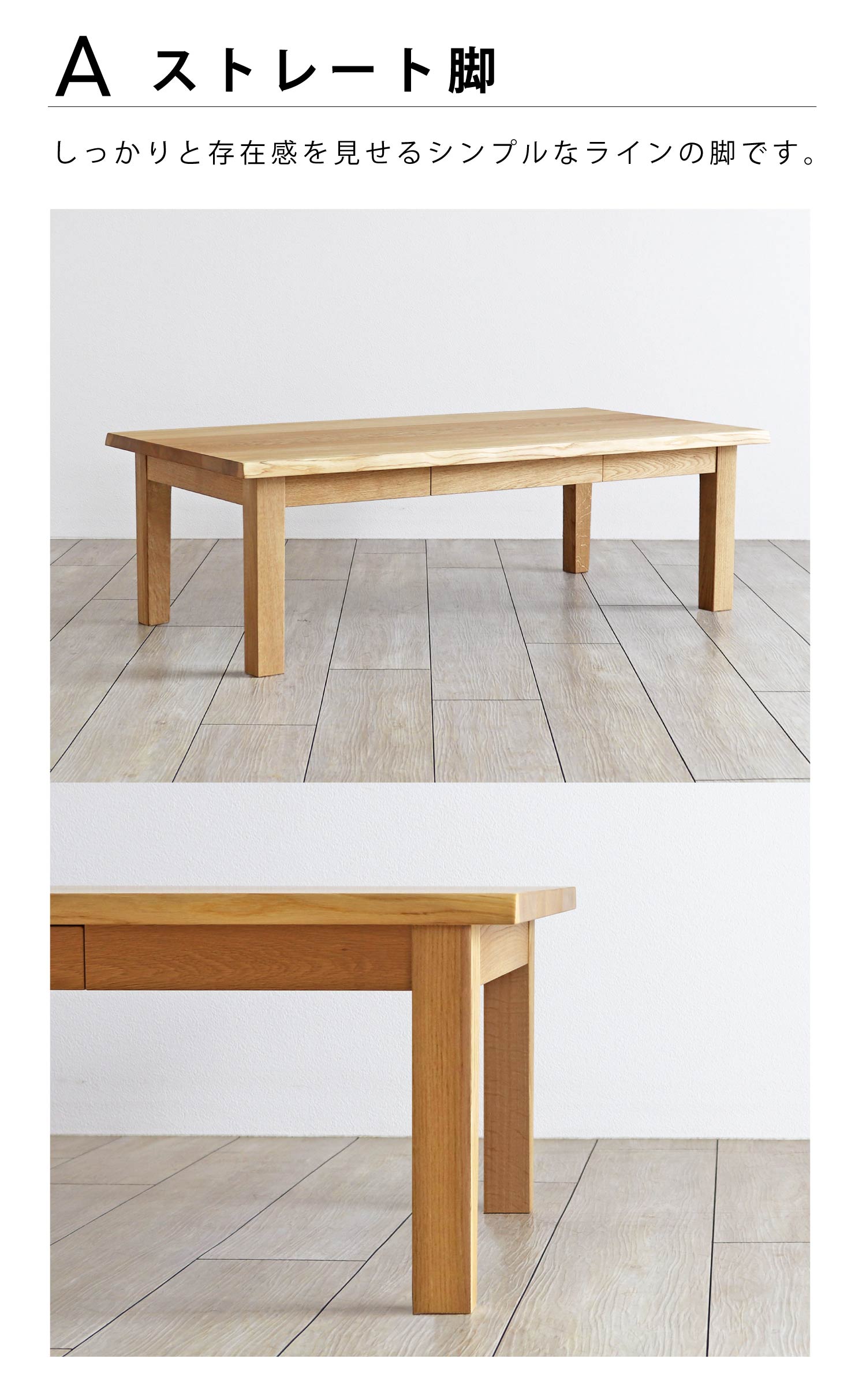 (税込価格 ¥120,890〜) ※木の種類、サイズ、脚の形状、塗装によって 価格が異なります。 詳しくは、下記価格表をご覧ください。 |