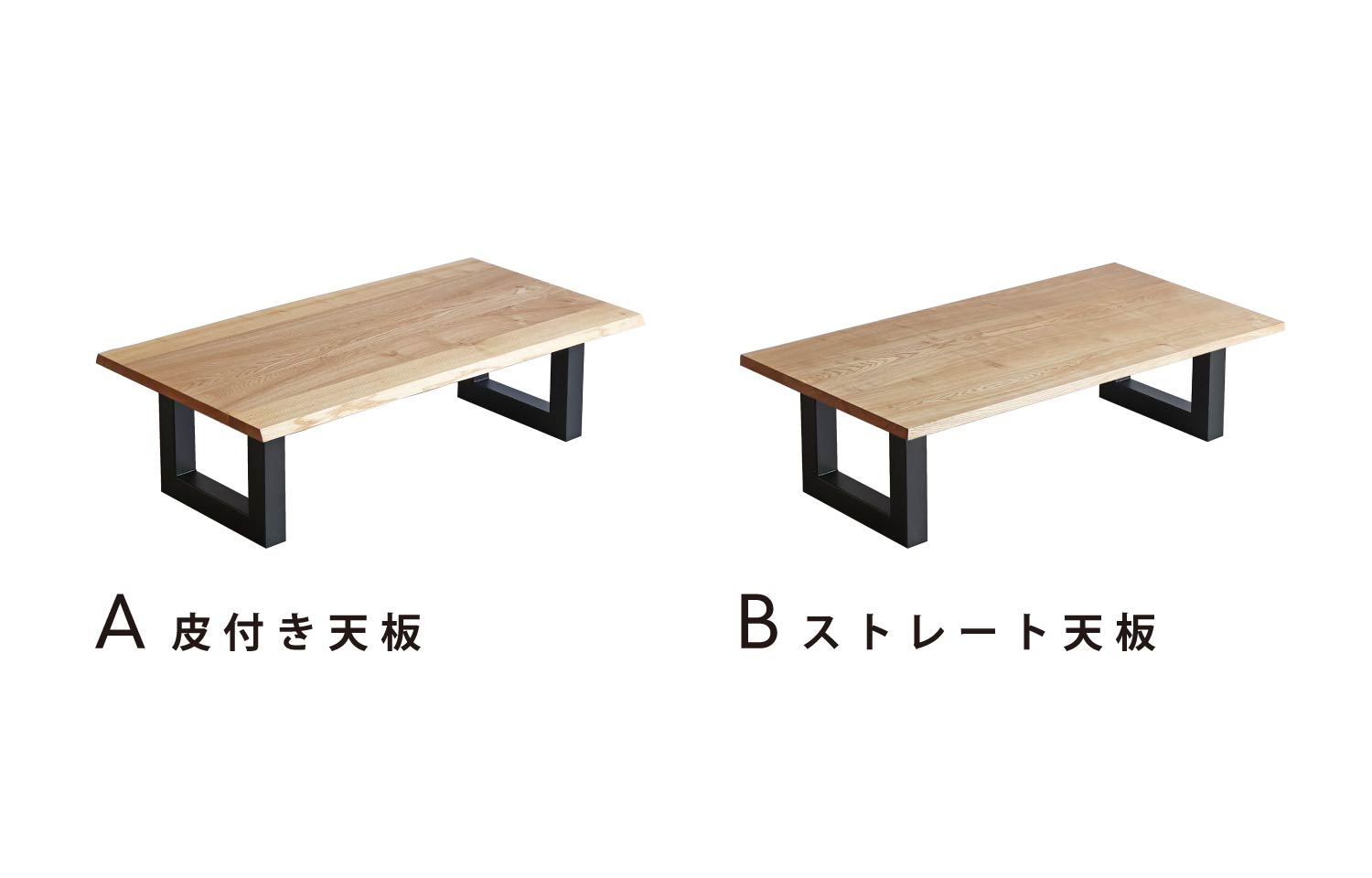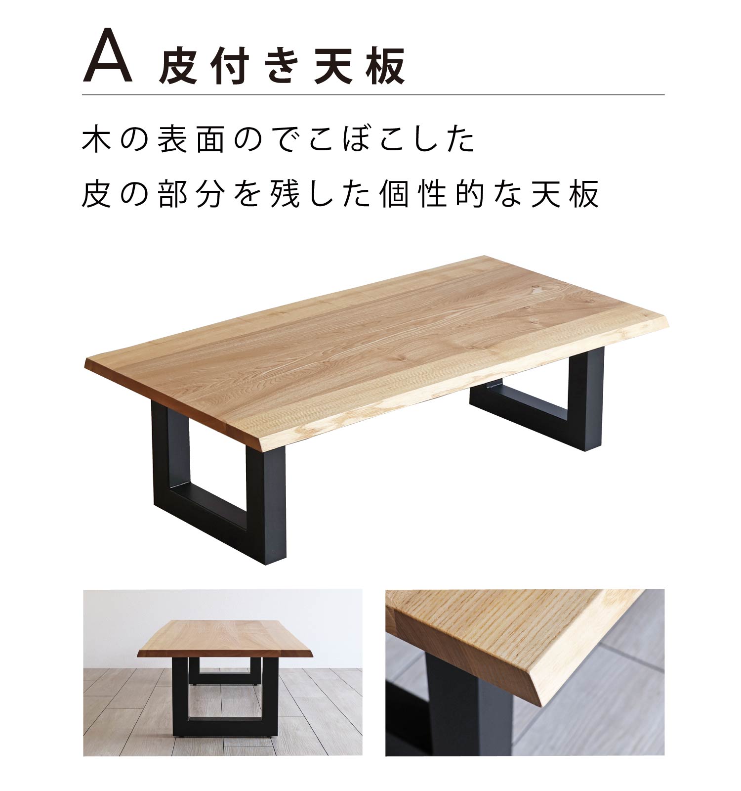 幅は〜130cmまで、10cm刻みでおつくり出来ます。 奥行は〜70cmまで、5cm刻みでおつくり出来ます。 高さは〜45cmまで、1cm刻みでおつくり出来ます。 天板の厚み:約27(mm) ※「A皮付き天板」の場合は、変則的な形状のため誤差があり 奥行きは目安のサイズとなりますのでご了承ください。 |