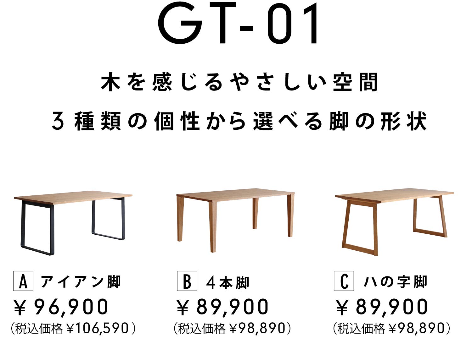 (税込価格 ¥98,890〜) 脚の形状によって価格が異なります。 詳しくは、下記価格表をご覧ください。 |
