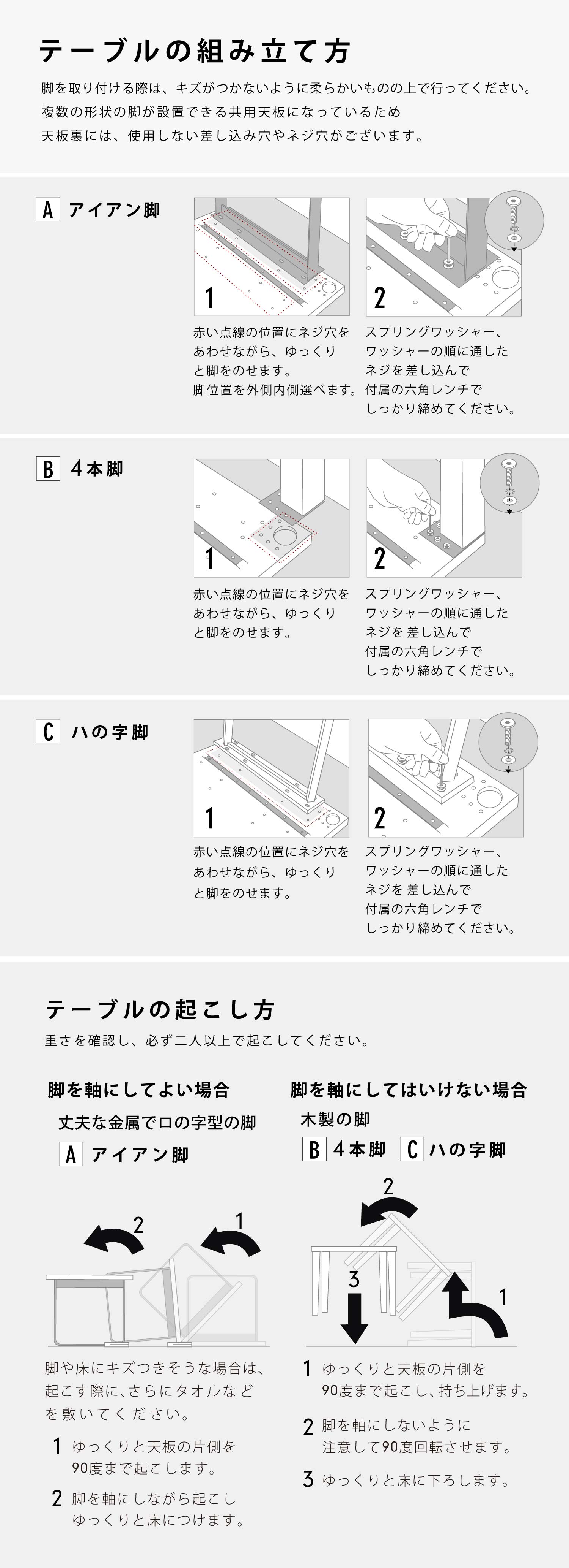 > テーブルのお取り扱い方法 と アフターサービス