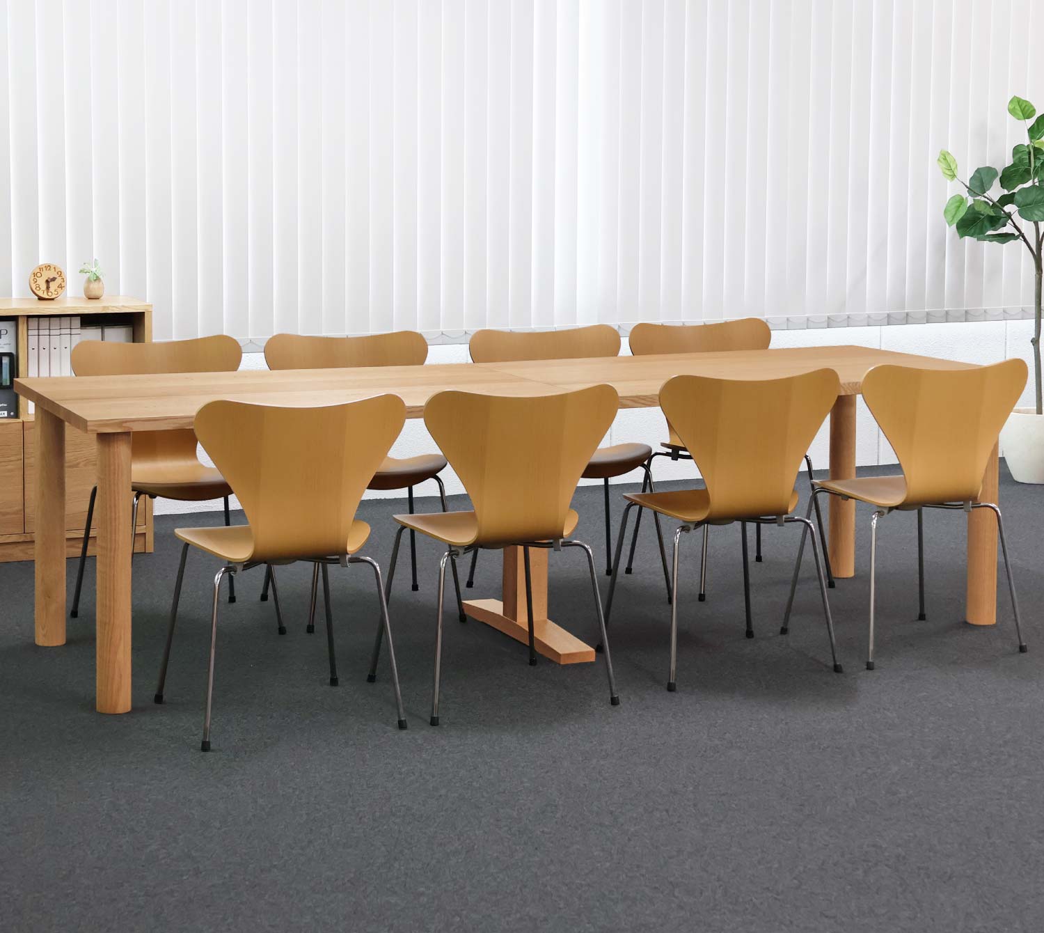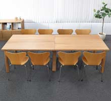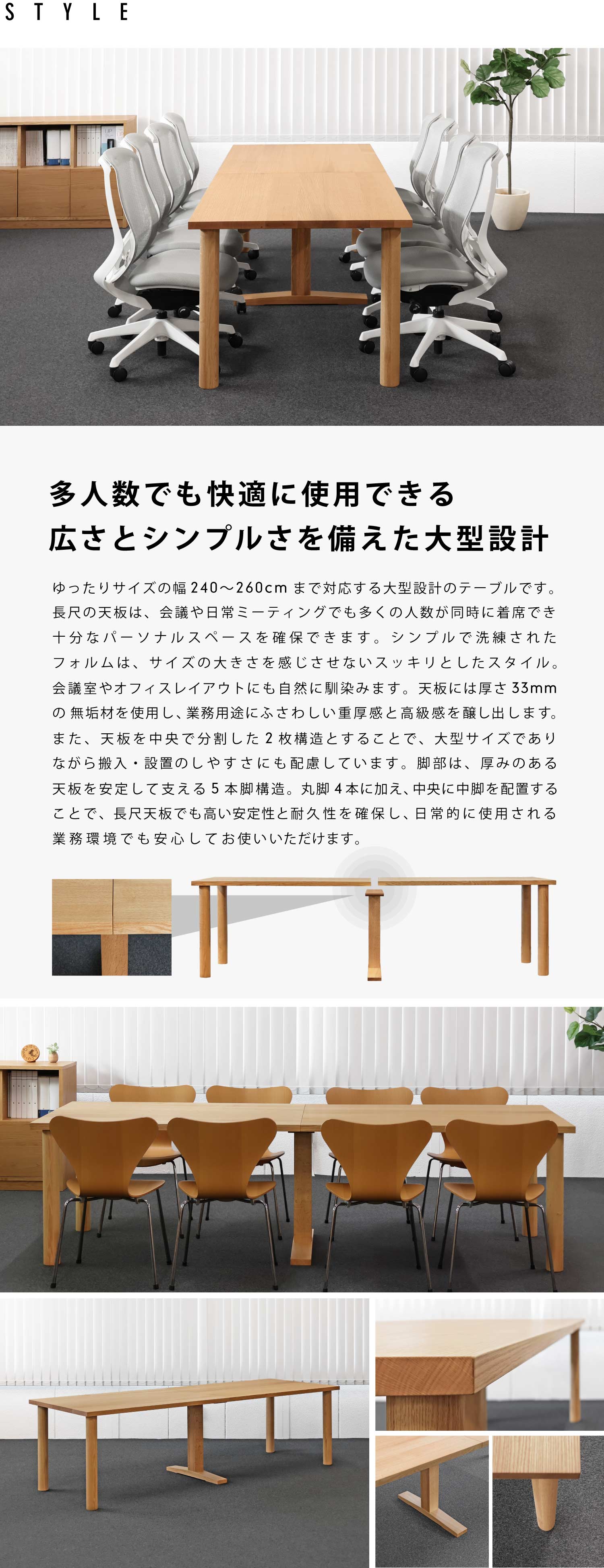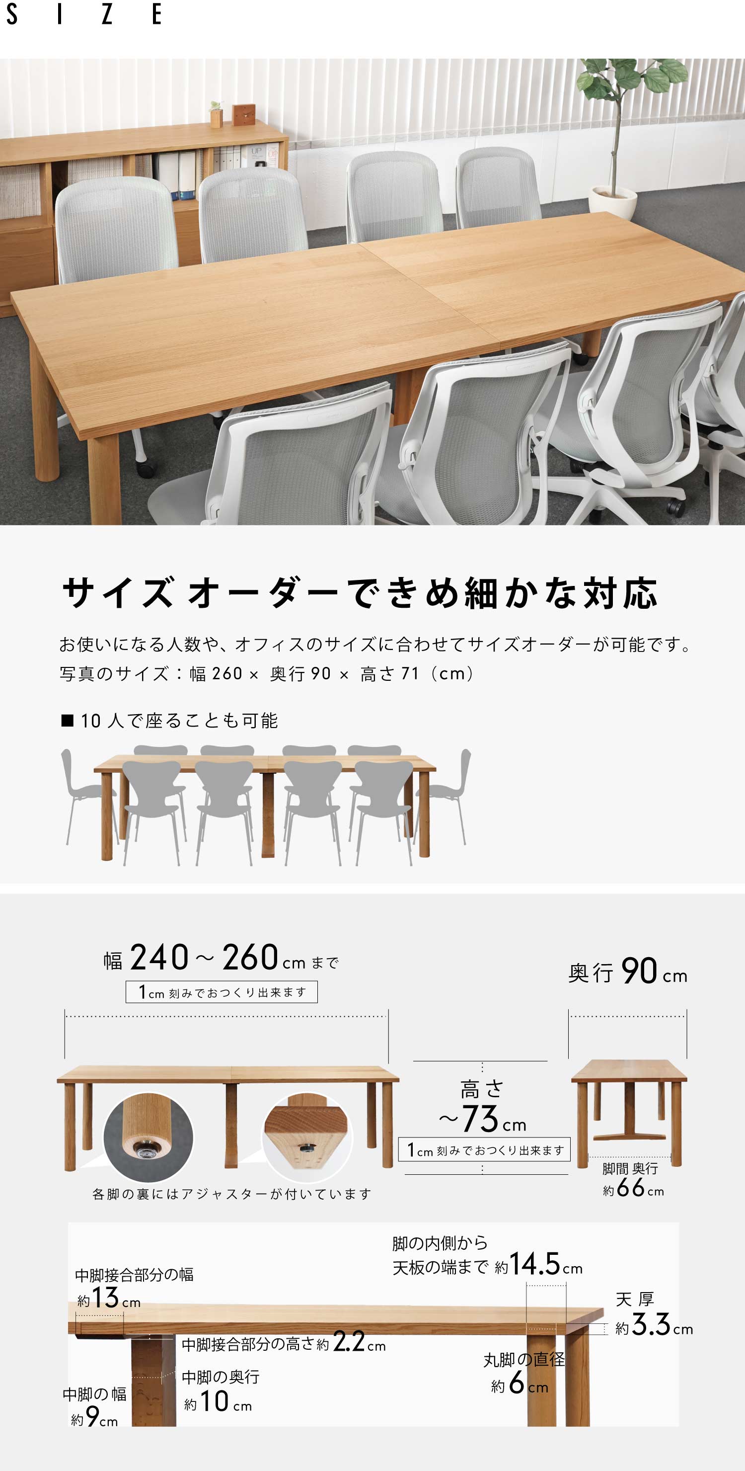 | サイズ | 幅は240〜260cmまで、1cm刻みでおつくり出来ます。 奥行は90cmです。 高さは〜73cmまで、1cm刻みでおつくり出来ます。 天板の厚み:約33 (mm) |